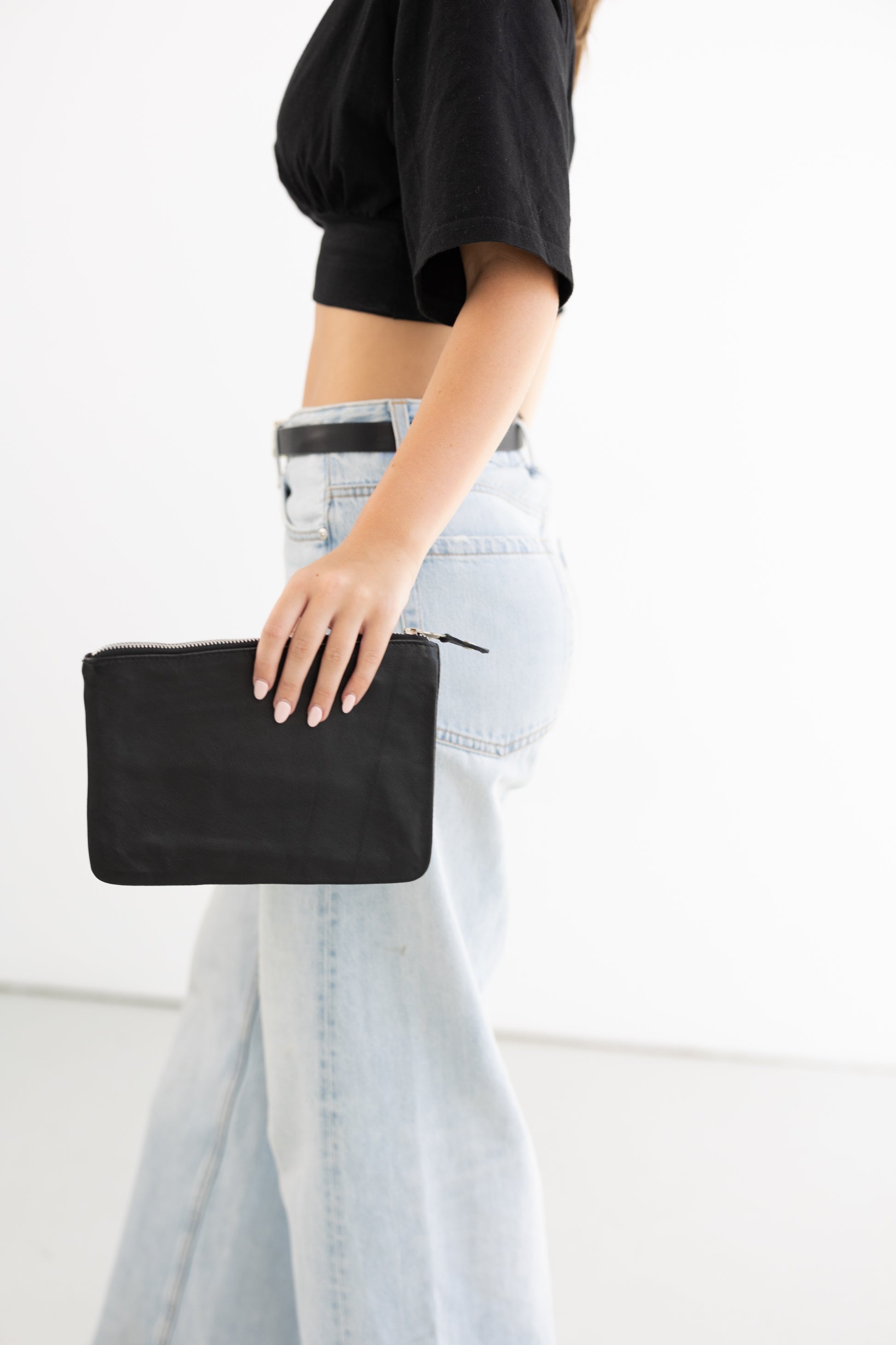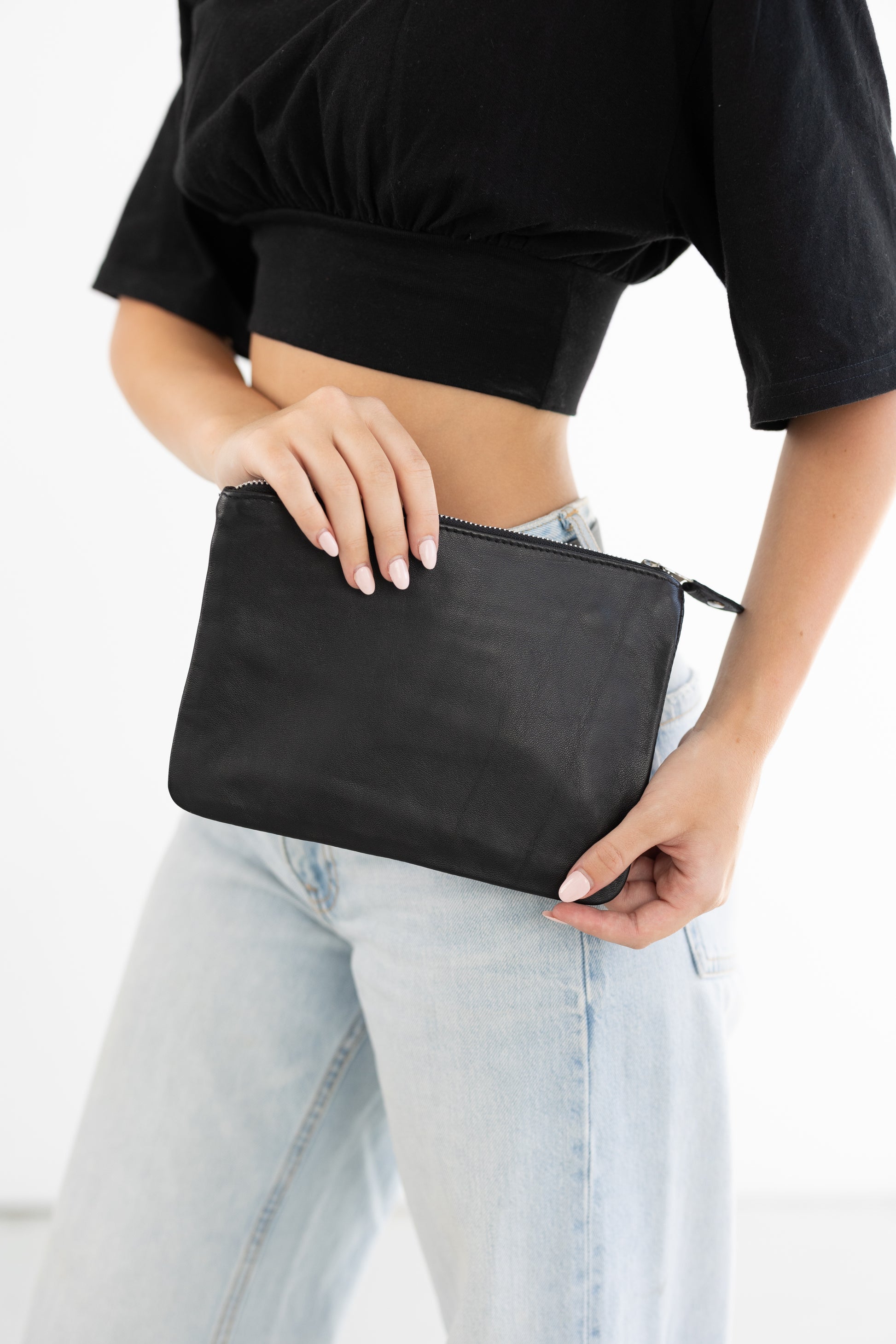 Hand made with 100% leather, silk lined with an internal zip pocket and outer zip.